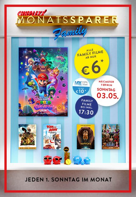 Am Sonntag, 3. Mai findet wieder der Monatssparer statt: feiert großes Kino um nur 6€*!
