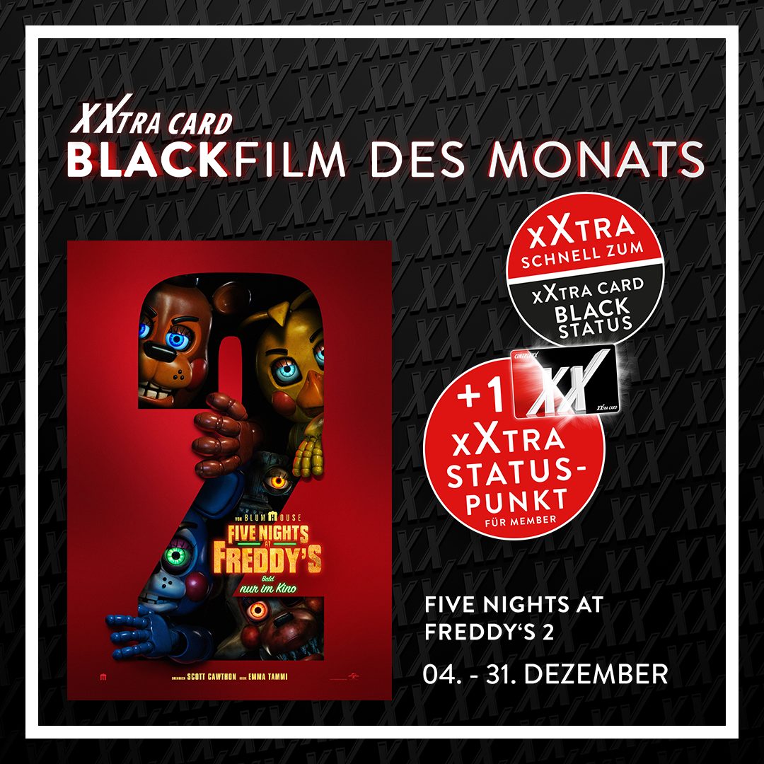 Von 4.-31.12.2025 findet unser BLACK Film des Monats mit „Five Night at Freddys 2“statt.