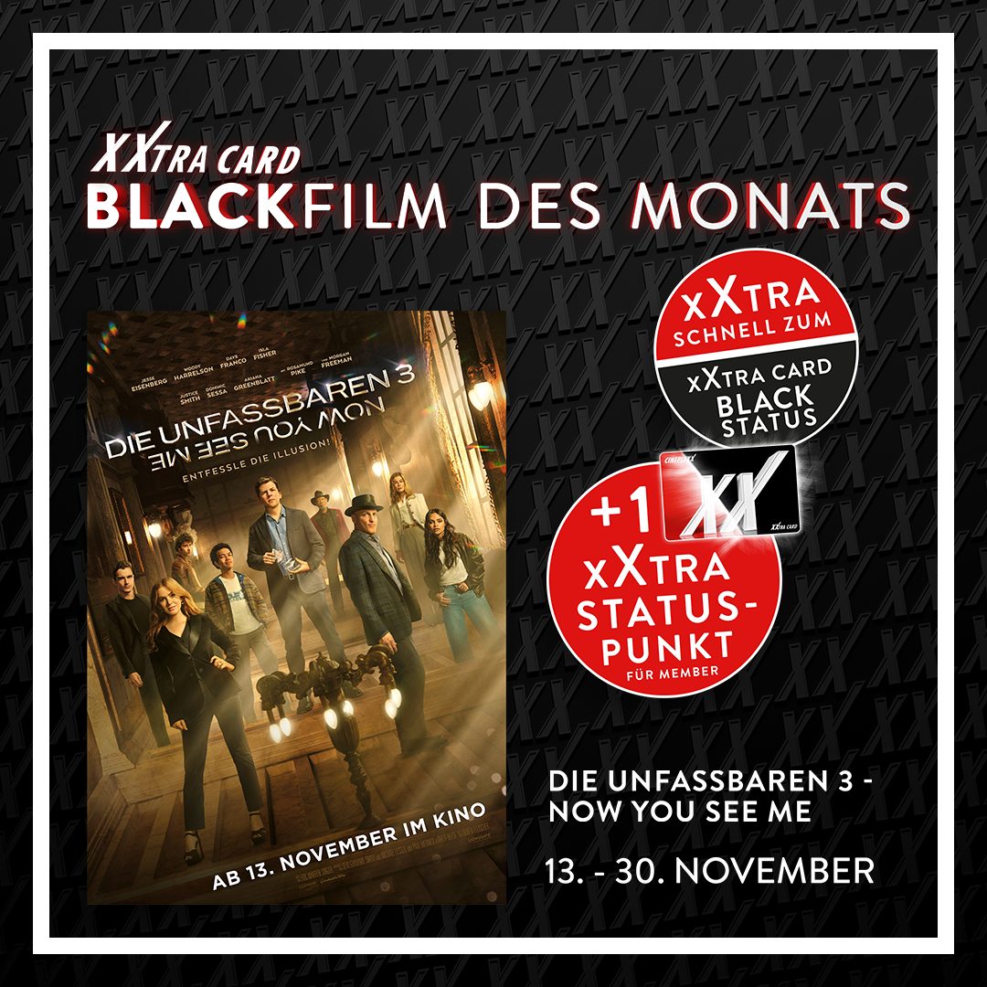 Gönn dir zwischen 13. und 30. November unseren BLACK Film des Monats und hol dir mit deiner xXtra Card einen zusätzlichen Statuspunkt.