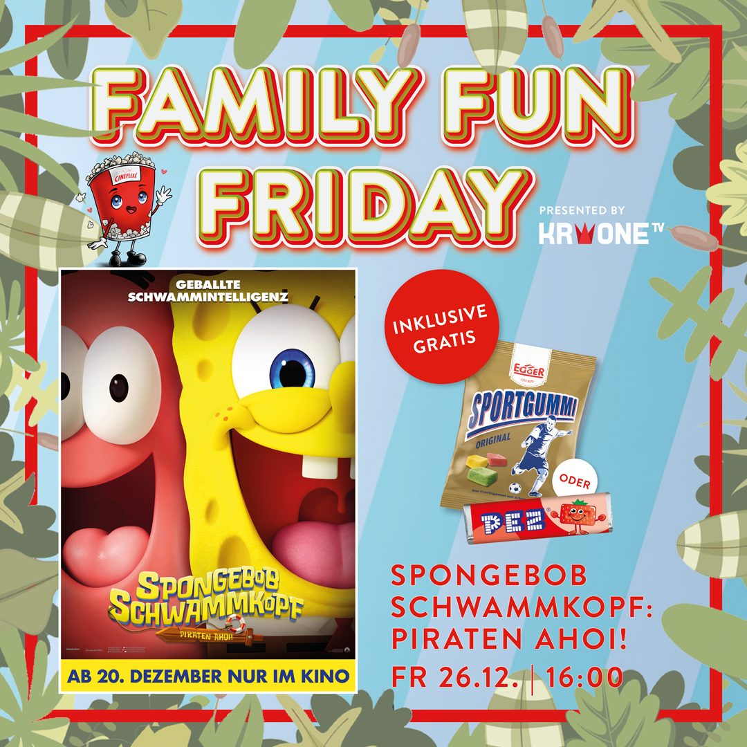 *Nicht mit anderen Aktionen kombinierbar. Nur gültig für die Vorstellung der “Family Fun Friday” solange der Vorrat reicht.