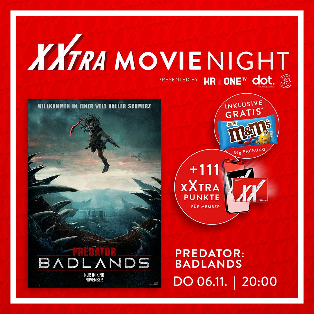 Am 6.11.2025 findet die xXtra Movie Night um 20:00 Uhr mit „Predator: Badlands“ statt.