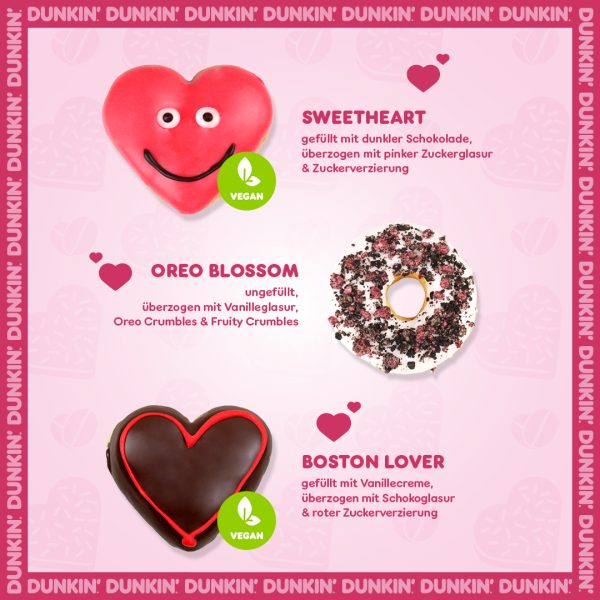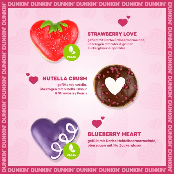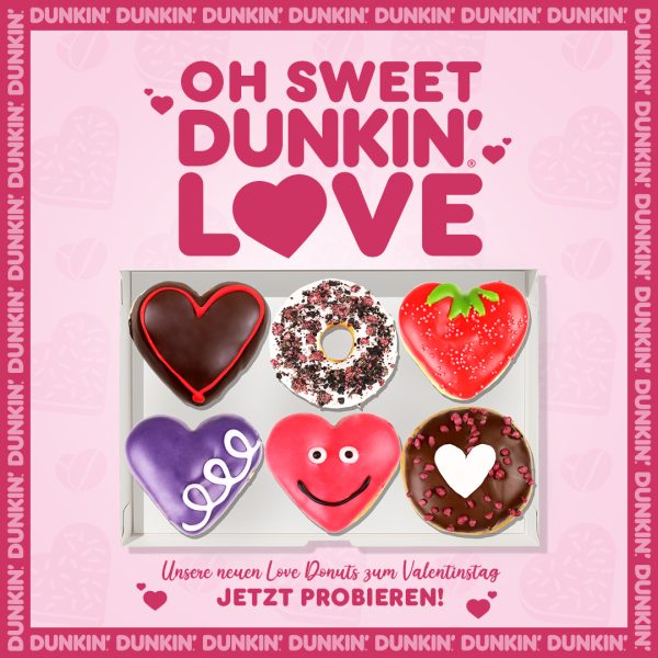 Zum Fest der Liebe gibt es auch dieses Jahr wieder Donuts in der beliebten Valentine Edition bei DUNKIN’ in der MILLENNIUM City!