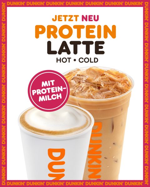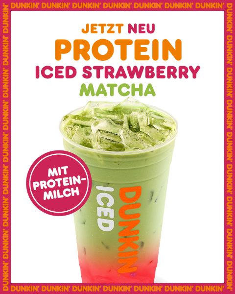 Ab sofort gibt es bei DUNKIN’ jetzt auch Protein Drinks – wie z.B. den Protein Latte in heiß oder kalt, oder den Protein Matcha, auch mit Strawberry! Jetzt auschecken bei DUNKIN’ in der MILLENNIUM City!